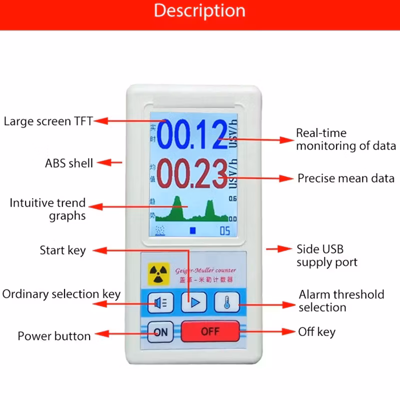 Vare sig du är intresserad av att testa mineraler i fält eller kolla aktuell bakgrunds-strålning i hemmet får du snabbt en avläsning som både innefattar beta, gamma och röntgenstrålning.